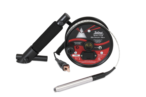 The Model 122M Mini Interface Meter with laser marked cable is a convenient small version, which can easily fit in a backpack or an optional custom mini carry case. It uses narrow laser marked cable in 25 m or 80 ft lengths.