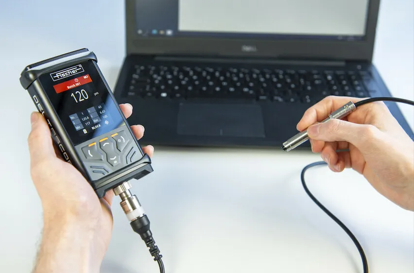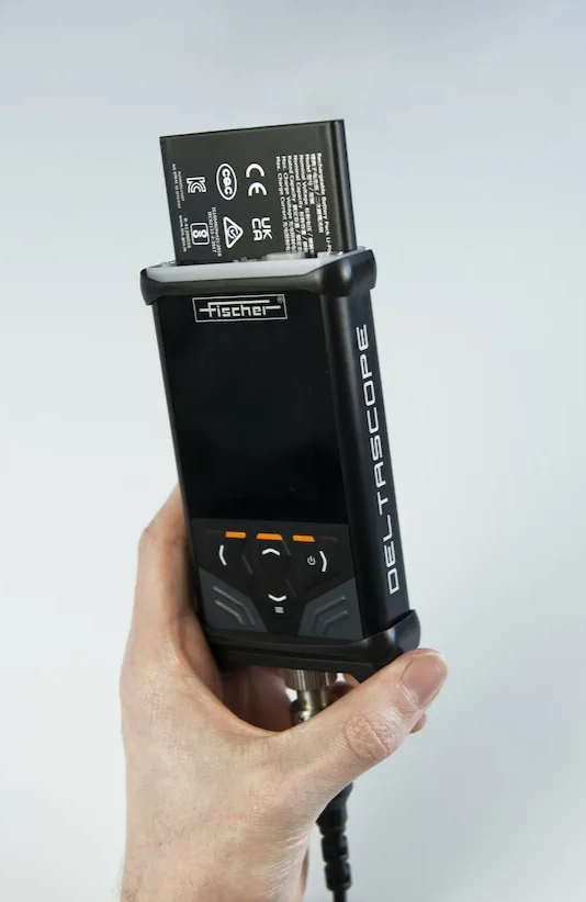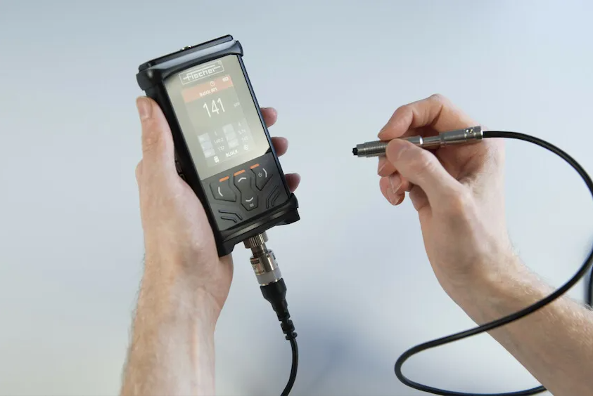 Robust and powerful handheld instrument for coating thickness measurement steel or iron according to the magnetic induction method (DIN EN ISO 2178) with interchangeable probes.